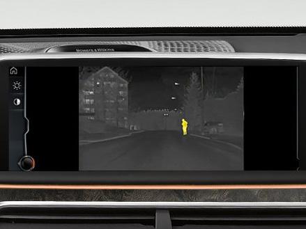 Система ночного видения BMW Night Vision с функцией распознавания людей обеспечивает видимость за пределами светового конуса фар и позволяет в темное время суток распознавать людей и крупных животных на большом расстоянии. Кроме того, с помощью функции динамической подсветки объекты целенаправленно освещаются неослепляющим светом основной фары. Инфракрасная камера, расположенная за решеткой радиатора, контролирует пространство перед автомобилем и передает полученные изображения на дисплей управления. Распознавание людей и животных возможно на расстоянии прим. до 300 м.