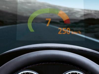 Входящий в стандартную комплектацию проекционный дисплей отображает информацию о скорости, направлении движения и данные системы Check Control непосредственно в поле зрения водителя. Нажатием кнопки активируется индикатор М. Помимо скорости, проекционный дисплей также показывает информацию о выбранной передаче с помощью регулируемого тахометра с индикаторами передач. Изображение располагается на уровне глаз, благодаря чему водитель может полностью сосредоточиться на дороге. Преимущества: больше безопасности и удовольствия за рулем.