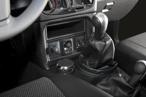 Консоль имеет новую форму, на нее перенесены блоки управления наружными зеркалами, обогревом сидений и прикуриватель. Рукоятки управления коробкой передач и раздаточной коробкой более эргономичной формы, в комплектации GLS со вставками «под алюминий».