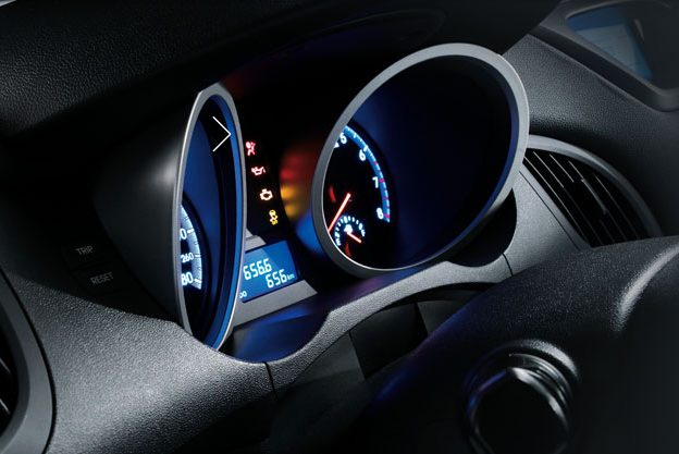 Панель из двух цилиндров предлагает водителю всю необходимую информацию и еще больше подчеркивает изысканный стиль интерьера.