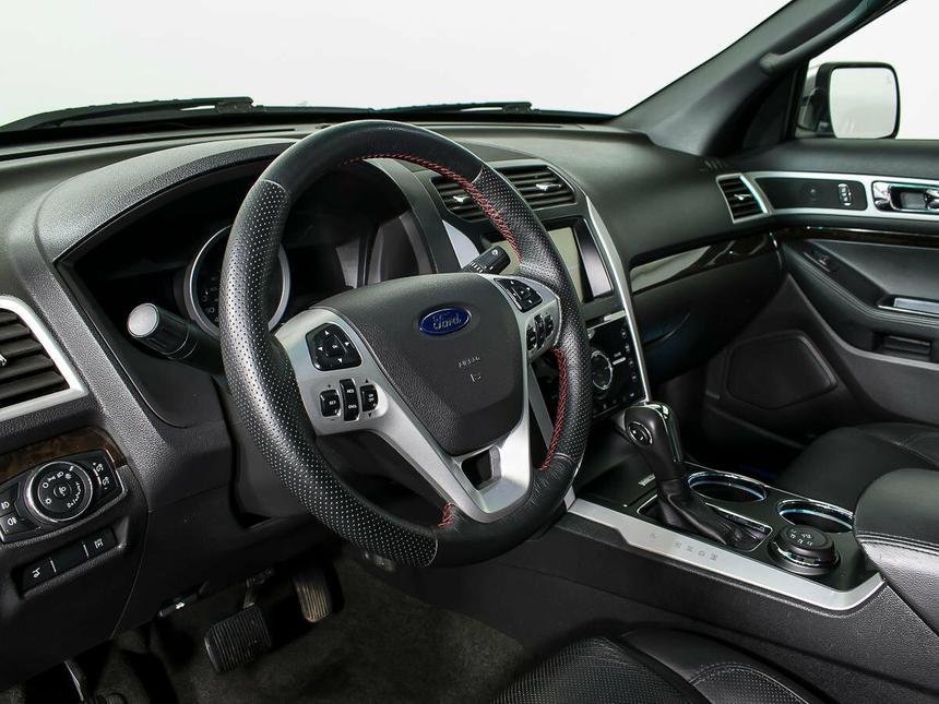 Мы заботимся о Вас и проверяем историю каждого автомобиля Ford Explorer V (2014–2015), 2014 год — надёжный внедорожник с пятидверным кузовом, который подойдёт как для городских поездок, так и для путешествий за город. Автомобиль оснащён бензиновым двигателем объёмом 3,5 литра и мощностью 294 лошадиные силы, что обеспечивает хорошую динамику, а автоматическая коробка передач делает управление комфортным. Серебряный цвет кузова придаёт автомобилю сдержанный и современный вид, а рейлинги на крыше и декоративные молдинги добавляют практичности. Диски размером 18 дюймов способствуют хорошей проходимости и устойчивости на дороге. В салоне — эргономичная обстановка с тканевой обивкой. Рулевое колесо и рычаг КПП отделаны кожей, что добавляет уюта. Мультифункциональное рулевое колесо, регулировка руля по высоте и вылету, а также электрорегулировка сидений водителя и пассажира обеспечивают удобство во время поездок. Передний центральный подлокотник и функция складывания спинки сиденья пассажира повышают комфорт, а третий ряд сидений позволяет разместить больше пассажиров — это особенно удобно для больших семей или поездок с друзьями. Автомобиль оснащён современными системами, которые делают вождение проще и безопаснее. Активный усилитель руля и круиз-контроль облегчают управление, а антиблокировочная система тормозов (ABS) и система курсовой стабилизации (ESP / ESC / DSC / VSA) повышают безопасность на дороге. Парктроник задний помогает при парковке, а датчик давления в шинах позволяет следить за состоянием колёс. Система помощи при старте в гору будет полезна при движении по сложным участкам дороги.