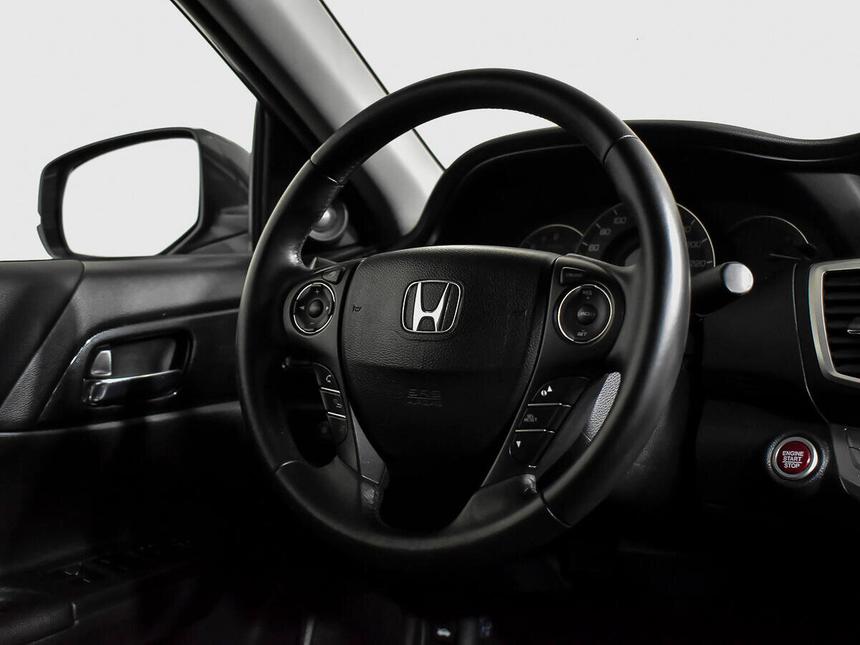 Мы заботимся о Вас и проверяем историю каждого автомобиля Honda Accord IX поколения (2013–2016) 2013 года — седан, который сочетает в себе надёжность и функциональность. Серый кузов и продуманный дизайн делают автомобиль уместным как для городских поездок, так и для путешествий на большие расстояния. Под капотом — бензиновый двигатель объёмом 2,4 литра и мощностью 180 лошадиных сил, который обеспечивает хорошую динамику при сохранении экономичности. Автоматическая коробка передач делает управление более комфортным, а активный усилитель руля и регулировка руля по высоте и вылету позволяют настроить вождение под индивидуальные предпочтения. В салоне — эргономичное пространство с тканевой обивкой. Рулевое колесо и рычаг КПП отделаны кожей, что добавляет практичности. Передний центральный подлокотник и функция складывания спинки сиденья пассажира повышают комфорт во время поездок. Третий задний подголовник обеспечивает дополнительный комфорт для пассажиров. Автомобиль оснащён современными системами, которые делают вождение более удобным и безопасным. Среди них — круиз-контроль, система доступа без ключа, запуск двигателя с кнопки. Бортовой компьютер поможет следить за основными параметрами автомобиля. Аудиосистема с AUX и USB позволит наслаждаться музыкой в дороге.