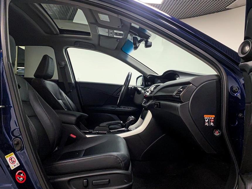 Мы заботимся о Вас и проверяем историю каждого автомобиля Honda Accord IX поколения 2013 года — это седан, который сочетает в себе надёжность и функциональность. Синий кузов и продуманный дизайн делают автомобиль уместным как для городских поездок, так и для путешествий. Под капотом — бензиновый двигатель объёмом 2,4 литра и мощностью 180 лошадиных сил, который в сочетании с автоматической коробкой передач обеспечивает плавное и комфортное вождение. В салоне — эргономичная обстановка с тканевой обивкой, отделкой рулевого колеса и рычага КПП кожей. Мультифункциональное рулевое колесо с регулировкой по высоте и вылету позволяет настроить управление под себя, а активный усилитель руля делает манёвры более лёгкими и точными. Для удобства водителя и пассажира предусмотрены электростеклоподъёмники, подогрев передних сидений, круиз-контроль и бортовой компьютер. Аудиосистема с AUX и USB разъёмами позволит наслаждаться музыкой в дороге. Комфорт в любую погоду обеспечивает двухзонный климат-контроль. Обогрев зеркал, датчик дождя и датчик света упрощают вождение в непогоду, а омыватель фар помогает поддерживать хорошую видимость. Безопасность на дороге обеспечивают антиблокировочная система тормозов (ABS) и система курсовой стабилизации (ESP / ESC / DSC / VSA). В автомобиле есть подушки безопасности: для водителя и пассажира, боковые и оконные (шторки). Система помощи при старте в гору пригодится на склонах, а крепление для детского кресла на заднем ряду сделает поездки с детьми более безопасными.