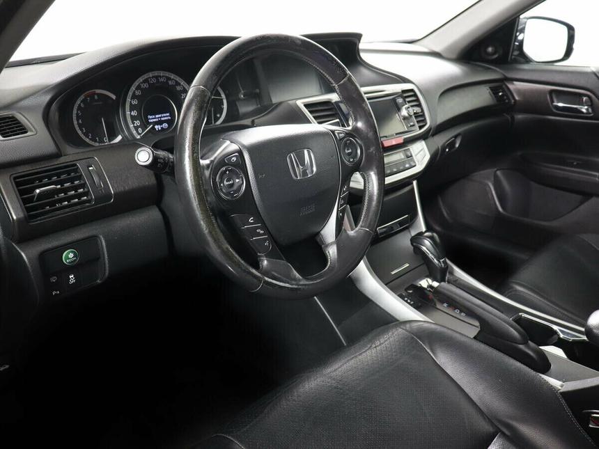 Мы заботимся о Вас и проверяем историю каждого автомобиля Honda Accord IX 2013 года — это седан, который сочетает в себе надёжность, функциональность и технологичность. Автомобиль оснащён бензиновым двигателем объёмом 2,4 литра и мощностью 180 лошадиных сил, что обеспечивает хорошую динамику и экономичность. Автоматическая коробка передач делает вождение плавным и комфортным. Внешний вид автомобиля выполнен в сером цвете, что придаёт ему строгий и лаконичный вид. Вместительный салон с кожаной обивкой и отделкой кожей рулевого колеса и рычага КПП создаёт атмосферу уюта и комфорта. Электрорегулировка сидений для водителя и пассажира, а также подогрев всех сидений делают поездки приятными даже в холодное время года. Автомобиль оснащён множеством современных систем и функций, которые упрощают управление и повышают безопасность. Среди них — бортовой компьютер, аудиосистема с AUX, Bluetooth и USB, навигационная система, климат-контроль, мультифункциональное рулевое колесо, запуск двигателя с кнопки, система доступа без ключа, парктроники передний и задний, камера заднего вида. Безопасность обеспечивают антиблокировочная система тормозов (ABS), система курсовой стабилизации, подушки безопасности для водителя и пассажира, боковые подушки безопасности, оконные подушки безопасности (шторки), система контроля слепых зон, система контроля за полосой движения, система помощи при старте в гору.