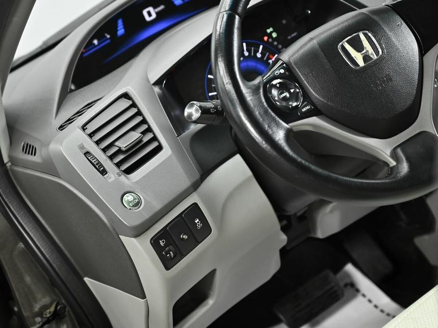 Мы заботимся о Вас и проверяем историю каждого автомобиля Honda Civic IX поколения 2012 года — практичный седан, который подойдёт как для городских поездок, так и для путешествий. Коричневый кузов и эргономичный салон создают сбалансированный образ, а автоматическая коробка передач и бензиновый двигатель объёмом 1,8 литра (142 л. с.) обеспечивают плавное и уверенное движение. Автомобиль оснащён рядом функций, которые делают его использование комфортным в любых условиях. Мультифункциональное рулевое колесо, регулировка руля по высоте и вылету, а также усилитель рулевого управления облегчают управление. Круиз-контроль поможет расслабиться в долгих поездках, а датчик давления в шинах позволит следить за состоянием автомобиля. Запуск двигателя с кнопки и система доступа без ключа добавляют удобства в повседневное использование. В салоне предусмотрены опции для повышения комфорта пассажиров: подогрев передних сидений, электростеклоподъёмники на всех дверях, а также 1-зонный климат-контроль. Обивка салона выполнена из ткани, а рулевое колесо отделано кожей, что создаёт гармоничное сочетание практичности и качества. Функция складывания спинки сиденья пассажира позволяет увеличить объём багажного отделения при необходимости. Наличие люка добавляет ощущение простора в салоне. Безопасность вождения обеспечивают современные системы: антиблокировочная система тормозов (ABS), система курсовой стабилизации (ESP / ESC / DSC / VSA), а также полный комплект подушек безопасности — для водителя, пассажира, боковые и оконные (шторки). Система помощи при старте в гору пригодится на склонах, а парктроник и камера заднего вида облегчат парковку.