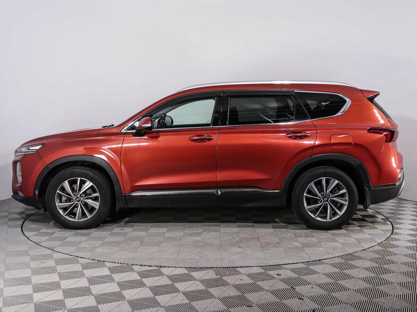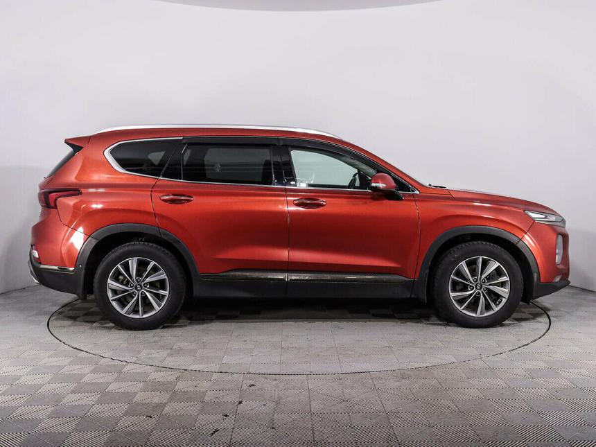 Мы заботимся о Вас и проверяем историю каждого автомобиля Hyundai Santa Fe IV поколения 2018 года — практичный внедорожник, который подойдёт как для городских поездок, так и для путешествий за город. Пятидверный кузов, дизельный двигатель объёмом 2,2 литра и мощностью 200 лошадиных сил, а также автоматическая коробка передач делают этот автомобиль удобным в эксплуатации. Оранжевый цвет кузова придаёт машине выразительный внешний вид, а тонированные стёкла обеспечивают комфорт в солнечную погоду. Вместительный салон с комбинированной обивкой рассчитан на длительные поездки. Сиденье водителя оснащено функцией памяти положения, а сиденье пассажира — электрорегулировкой. Подогрев всех сидений и вентиляция передних сидений создают дополнительный комфорт в любое время года. Обогрев рулевого колеса и отделка кожей рычага КПП добавляют приятные детали в интерьер. Передний центральный подлокотник повышает удобство во время движения, а функция складывания спинки сиденья пассажира позволяет при необходимости увеличить объём багажного отделения. Автомобиль оснащён современными системами, которые облегчают управление и повышают безопасность. Адаптивный круиз-контроль помогает поддерживать оптимальную скорость, а система доступа без ключа и запуск двигателя с кнопки делают эксплуатацию более удобной. Электронная приборная панель предоставляет всю необходимую информацию, а навигационная система с поддержкой Android Auto и CarPlay упрощает ориентирование на дороге. Безопасность движения обеспечивают многочисленные системы и функции: * антиблокировочная система тормозов (ABS);