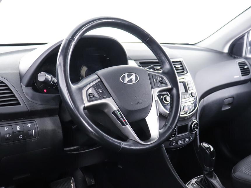 Мы заботимся о Вас и проверяем историю каждого автомобиля Hyundai Solaris I Рестайлинг 2015 года — практичный автомобиль, который подойдёт как для городских поездок, так и для путешествий. Этот пятидверный хетчбэк с автоматической коробкой передач и 1,6-литровым бензиновым двигателем (123 л. с.) отличается надёжностью и экономичностью. Белый кузов автомобиля выглядит лаконично и современно. Вместительный салон с тканевой обивкой и отделкой кожей рулевого колеса и рычага КПП создаёт комфортные условия для водителя и пассажиров. Регулировка руля по высоте и вылету, а также усилитель рулевого управления делают управление автомобилем лёгким и удобным. Функциональность автомобиля подчёркивают такие опции, как электростеклоподъёмники на всех дверях, подогрев передних сидений, климат-контроль, аудиосистема с AUX, Bluetooth и USB. Мультифункциональное рулевое колесо и бортовой компьютер позволяют водителю быстро получать необходимую информацию и управлять функциями автомобиля. Безопасность обеспечивают антиблокировочная система тормозов (ABS), подушки безопасности водителя и пассажира, а также крепление для детского кресла на заднем ряду. Обогрев зоны стеклоочистителей, форсунок стеклоомывателей и зеркал повышает комфорт и безопасность вождения в холодное время года.