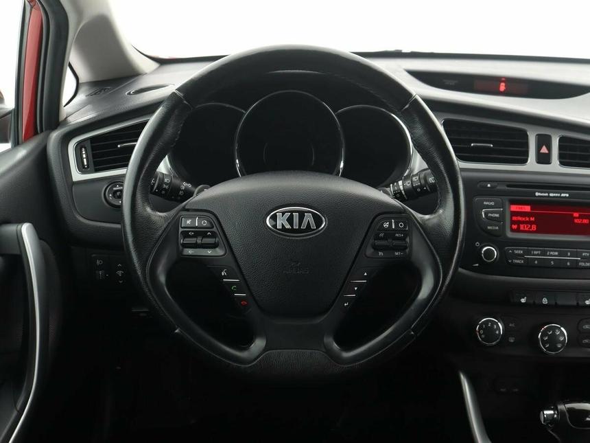 Мы заботимся о Вас и проверяем историю каждого автомобиля Kia Ceed II 2015 года — это универсальный автомобиль, который сочетает в себе практичность и функциональность. Кузов универсал и автоматическая коробка передач делают его удобным для повседневных поездок и путешествий. Красный цвет автомобиля придаёт ему выразительности, а лаконичный дизайн кузова привлекает внимание. Бензиновый двигатель объёмом 1,6 литра и мощностью 129 лошадиных сил обеспечивает хорошую динамику и экономичность. В автомобиле предусмотрены все необходимые опции для комфортного вождения: бортовой компьютер, аудиосистема с AUX, Bluetooth и USB, кондиционер, подогрев передних сидений, электростеклоподъёмники, регулировка руля по высоте и вылету, активный усилитель руля, круиз-контроль и мультифункциональное рулевое колесо. Охлаждаемый перчаточный ящик станет приятным дополнением. Безопасность на дороге обеспечивают антиблокировочная система тормозов (ABS), подушки безопасности водителя, пассажира, боковые подушки безопасности и оконные подушки безопасности (шторки). Для перевозки детей предусмотрены крепления на заднем ряду сидений.