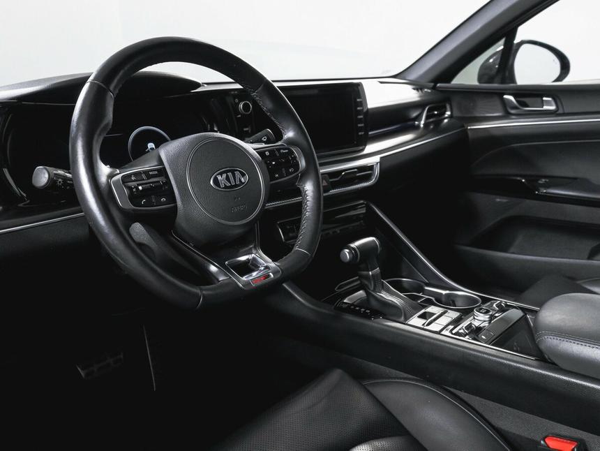 Мы заботимся о Вас и проверяем историю каждого автомобиля Kia K5 III поколения (2020–2023) 2020 года — седан, который сочетает в себе технологичность и практичность. Серый кузов и продуманный дизайн делают автомобиль уместным как для городских поездок, так и для путешествий. Под капотом — бензиновый двигатель объёмом 2,5 литра и мощностью 194 лошадиные силы, который работает в паре с автоматической коробкой передач. В салоне — эргономичное пространство с обивкой из кожи, что придаёт интерьеру солидный вид. Рулевое колесо и рычаг КПП также отделаны кожей. Для удобства водителя предусмотрены электрорегулировки сиденья (в том числе регулировка по высоте), а также регулировка руля по высоте и вылету. Мультифункциональное рулевое колесо позволяет управлять многими функциями автомобиля, не отвлекаясь от дороги. Передний центральный подлокотник и функция складывания спинки сиденья пассажира повышают комфорт во время поездок. Автомобиль оснащён современными системами, которые делают вождение более удобным и безопасным. Среди них — круиз-контроль, датчик давления в шинах, парктроники (передний и задний), камера заднего вида. Системы ABS, ASR (TCS/TRC), ESP (ESC/DSC/VSA) и система помощи при торможении обеспечивают надёжное управление и безопасность на дороге. Также есть система помощи при старте в гору, что будет полезно на сложных участках. Для подключения мобильных устройств предусмотрены Bluetooth, USB, поддержка Android Auto и CarPlay. Аудиосистема и бортовой компьютер дополняют функциональность автомобиля. Климат-контроль с двумя зонами позволит создать комфортные условия для водителя и пассажира.