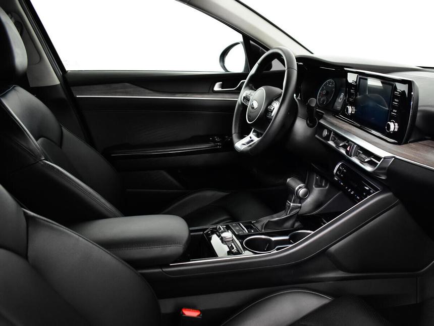 Мы заботимся о Вас и проверяем историю каждого автомобиля Kia K5 III поколения 2021 года — это седан, который сочетает в себе надёжность и функциональность. Автомобиль оснащён двухлитровым бензиновым двигателем мощностью 150 лошадиных сил и автоматической коробкой передач. Серый кузов придаёт модели сдержанный и лаконичный вид, который подойдёт как для городских поездок, так и для путешествий. Вместительный салон с кожаной обивкой и отделкой кожей рулевого колеса и рычага КПП создаёт комфортные условия для водителя и пассажиров. Электрорегулировка сиденья пассажира, а также память положения сиденья водителя обеспечивают удобство использования. Автомобиль оснащён современными технологиями, которые делают вождение более комфортным и безопасным. Мультифункциональное рулевое колесо, круиз-контроль, система доступа без ключа, запуск двигателя с кнопки и дистанционный запуск двигателя — всё это создаёт удобство в повседневной эксплуатации. Безопасность на дороге обеспечивают антиблокировочная система тормозов (ABS), антипробуксовочная система (ASR / TCS / TRC), система курсовой стабилизации (ESP / ESC / DSC / VSA), система помощи при торможении, система контроля слепых зон, система помощи при старте в гору, подушки безопасности водителя и пассажира, коленная подушка безопасности водителя, боковые подушки безопасности, а также блокировка замков задних дверей.