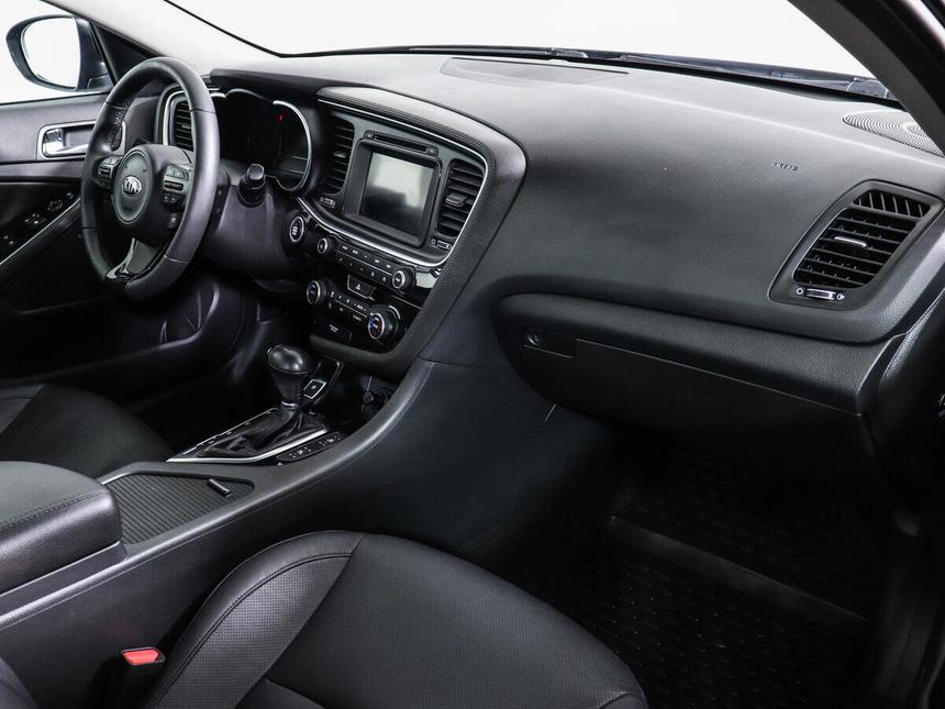 Мы заботимся о Вас и проверяем историю каждого автомобиля Kia Optima III Рестайлинг 2014 года — практичный седан с бензиновым двигателем объёмом 2,4 литра и мощностью 180 лошадиных сил. Автомобиль оснащён автоматической коробкой передач, что обеспечивает комфортное вождение в городских условиях и на трассе. Чёрный цвет кузова придаёт машине сдержанный и универсальный вид, а проверенный временем дизайн остаётся актуальным. В салоне — обивка из кожи, что добавляет комфорта и практичности в использовании. Рулевое колесо и рычаг КПП также отделаны кожей, причём руль регулируется по высоте и вылету, а ещё оснащён обогревом. Мультифункциональное рулевое колесо позволяет управлять различными системами автомобиля, не отвлекаясь от дороги. Комфорт во время поездок обеспечивают такие опции, как двухзонный климат-контроль, подогрев всех сидений, вентиляция передних сидений и память положений для сидений водителя и пассажира. Электростеклоподъёмники на всех дверях, электрорегулировка и электроскладывание зеркал, а также центральный замок делают использование автомобиля ещё более удобным. Безопасность вождения повышают различные системы: антиблокировочная система тормозов (ABS), система курсовой стабилизации (ESP / ESC / DSC / VSA), система контроля слепых зон, система помощи при старте в гору. Автомобиль оснащён подушками безопасности: для водителя и пассажира, боковыми и оконными (шторками). Парктроники (передний и задний), камера заднего вида и система автоматической парковки облегчают маневрирование и парковку.