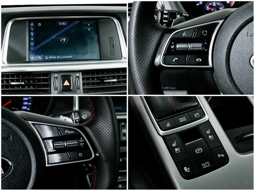 Мы заботимся о Вас и проверяем историю каждого автомобиля Kia Optima IV Рестайлинг (2018–2020) 2018 года — практичный седан с бензиновым двигателем объёмом 2,4 литра и мощностью 188 лошадиных сил. Чёрный кузов и автоматическая коробка передач делают этот автомобиль удобным для ежедневных поездок по городу и путешествий на дальние расстояния. В салоне — эргономичные сиденья с памятью положения для водителя и пассажира, обивка выполнена из кожи. Подогрев передних сидений, двухзонный климат-контроль и обогрев рулевого колеса обеспечивают комфорт в любую погоду. Мультифункциональное рулевое колесо с подрулевыми лепестками переключения передач позволяет удобно управлять автомобилем, а регулировка руля по высоте и вылету помогает подобрать оптимальное положение. Функциональные возможности Kia Optima включают круиз-контроль, систему доступа без ключа и запуск двигателя с кнопки — эти опции упрощают управление автомобилем и делают поездки более комфортными. Бортовой компьютер, аудиосистема с AUX, Bluetooth и USB, а также навигационная система помогут сделать время в пути приятнее. Безопасность движения обеспечивают антиблокировочная система тормозов (ABS), система курсовой стабилизации (ESP / ESC / DSC / VSA), подушки безопасности (для водителя, пассажира, боковые и оконные шторки), а также система помощи при старте в гору. Датчики давления в шинах, парктроники (передний и задний) и камера заднего вида помогают избежать неприятных ситуаций на дороге. Кроме того, в автомобиле есть система эра-глонасс, которая может оказаться полезной в экстренных ситуациях.