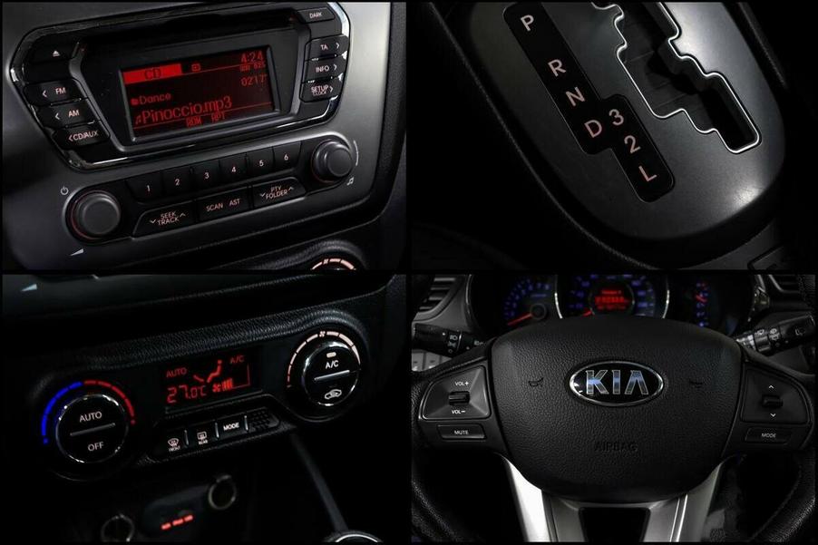 Мы заботимся о Вас и проверяем историю каждого автомобиля Kia Rio III (2013 год) — практичный автомобиль, который подойдёт как для городских поездок, так и для путешествий за город. Хетчбэк с пятью дверями отличается лаконичным дизайном и чёрным цветом кузова, что придаёт ему сдержанный и универсальный вид. Автомобиль оснащён бензиновым двигателем объёмом 1,6 литра и мощностью 123 лошадиные силы, а также автоматической коробкой передач. Такая комбинация обеспечивает плавное управление и приемлемый расход топлива, что делает машину экономичной в эксплуатации. В Kia Rio III предусмотрено множество функций, которые повышают комфорт повседневного использования. В автомобиле есть аудиосистема с AUX и USB, бортовой компьютер, однозонный климат-контроль. Передние сиденья оснащены подогревом, а руль — регулировкой по высоте и отделкой кожей, также имеется обогрев рулевого колеса. Мультифункциональное рулевое колесо позволяет управлять некоторыми функциями автомобиля, не отвлекаясь от дороги. Безопасность водителя и пассажиров обеспечивают: * антиблокировочная система тормозов (ABS);