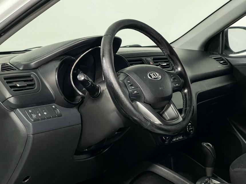 Мы заботимся о Вас и проверяем историю каждого автомобиля Kia Rio III (2014–2015), 2014 год — практичный седан, который подойдёт как для городских поездок, так и для путешествий. Белый кузов, бензиновый двигатель объёмом 1,6 литра и мощностью 123 лошадиные силы в сочетании с автоматической коробкой передач обеспечивают плавность хода и экономичность. Автомобиль оснащён рядом функций, которые делают его использование комфортным в любых условиях. В салоне установлен бортовой компьютер, есть аудиосистема с AUX, Bluetooth и USB — можно легко подключить мобильное устройство и слушать музыку. Климат-контроль поможет поддерживать комфортную температуру в салоне, а подогрев передних сидений сделает поездки в холодное время года более приятными. Эргономичный салон с тканевой отделкой создаёт уютную атмосферу. Мультифункциональное рулевое колесо с отделкой кожей и подогревом, а также регулировка руля по высоте позволяют настроить управление под себя. Передний центральный подлокотник добавляет удобства во время поездок, а функция складывания спинки сиденья пассажира расширяет возможности для перевозки грузов. Безопасность вождения обеспечивают антиблокировочная система тормозов (ABS) и система курсовой стабилизации (ESP / ESC / DSC / VSA). В автомобиле установлены подушки безопасности: для водителя и пассажира, боковые подушки и шторки. Для перевозки детей предусмотрено крепление на заднем ряду сидений.