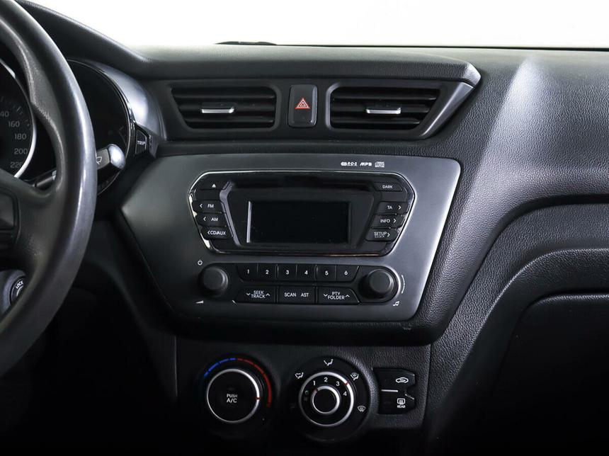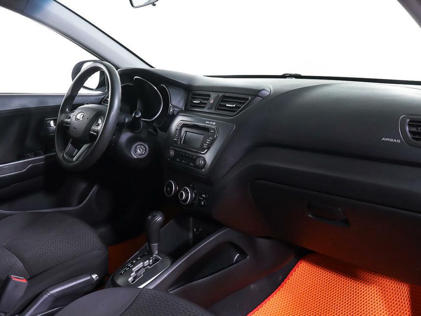 Мы заботимся о Вас и проверяем историю каждого автомобиля Kia Rio III 2014 года — это седан с автоматической коробкой передач и бензиновым двигателем объёмом 1,6 литра и мощностью 123 лошадиные силы. Чёрный цвет кузова придаёт автомобилю строгий и лаконичный вид, который подойдёт как для городских поездок, так и для путешествий. Экономичный двигатель и надёжная автоматическая коробка передач делают этот автомобиль практичным выбором для ежедневного использования. Простота обслуживания и проверенные временем технические решения обеспечивают долгосрочную эксплуатацию без значительных затрат. Вместительный салон с тканевой обивкой и отделкой кожей рулевого колеса и рычага КПП создаёт комфортные условия для водителя и пассажиров. Регулировка руля по высоте, электростеклоподъёмники на всех дверях, кондиционер, подогрев передних сидений и обогрев зоны стеклоочистителей и зеркал повышают удобство использования автомобиля в различных условиях. Мультифункциональное рулевое колесо с обогревом и усилитель рулевого управления делают управление более комфортным и лёгким. Безопасность обеспечивают антиблокировочная система тормозов (ABS), подушки безопасности для водителя и пассажира, а также крепление для детского кресла на заднем ряду. Противотуманные фары улучшают видимость в сложных погодных условиях.