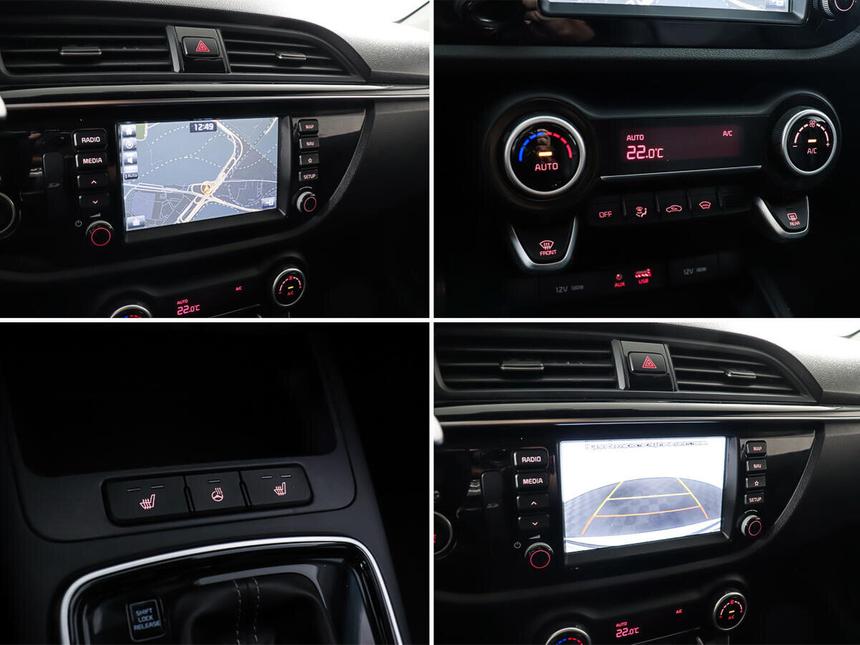 Мы заботимся о Вас и проверяем историю каждого автомобиля Kia Rio IV (2018 год) — практичный хетчбэк, который подойдёт как для городских поездок, так и для путешествий за город. Белый кузов и пятидверная компоновка делают автомобиль удобным для семьи и повседневных задач. Автомобиль оснащён бензиновым двигателем объёмом 1,6 литра и мощностью 123 лошадиные силы, а автоматическая коробка передач обеспечивает плавное вождение. В Kia Rio продумана функциональность для комфортного использования. В автомобиле есть бортовой компьютер, аудиосистема с AUX, Bluetooth, USB и розеткой 12V — можно легко подключить необходимые устройства. Климат-контроль создаст комфортный микроклимат в салоне, а подогрев всех сидений сделает поездки в холодное время года особенно приятными. Безопасность и удобство вождения обеспечены современными системами и опциями. Антиблокировочная система тормозов (ABS) и система курсовой стабилизации (ESP) помогают сохранять контроль над автомобилем в сложных ситуациях. Парктроник и камера заднего вида облегчают парковку, а датчик давления в шинах позволяет следить за состоянием колёс. Также в автомобиле установлены подушки безопасности: для водителя и пассажира, боковые и оконные (шторки). Эргономичный салон с тканевой отделкой и различными опциями для удобства водителя и пассажиров делает Kia Rio комфортным для длительных поездок. Мультифункциональное рулевое колесо с отделкой кожей и подогревом, регулировка руля по высоте и вылету, а также регулировка сиденья водителя по высоте позволяют настроить салон под индивидуальные предпочтения. Электрорегулировка зеркал, электростеклоподъёмники и центральный замок добавляют удобства в повседневном использовании.