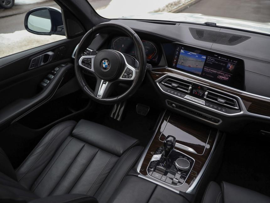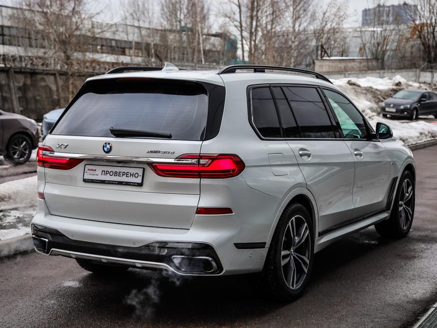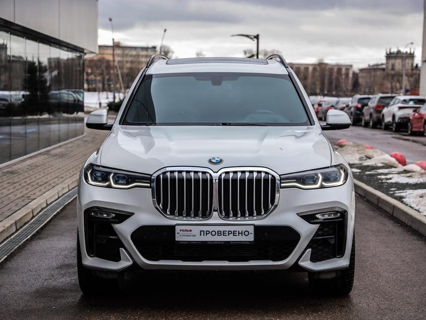 BMW X7 2019 года — флагманский внедорожник, который сочетает статус, технологии и настоящий комфорт бизнес-класса. Белый цвет подчёркивает масштаб и премиальность модели, автомобиль выглядит дорого и актуально. Дилерский автомобиль, приобретался у официального дилера. Один хозяин за всё время эксплуатации. Обслуживание своевременное и бережное, пробег преимущественно трассовый — это минимальная нагрузка на узлы по сравнению с городским режимом. Под капотом дизельный двигатель 30d мощностью 249 л.с. — мощный, тяговитый и при этом экономичный для своего класса. Разгон уверенный, тяга доступна с самых низких оборотов, автомобиль легко и плавно набирает скорость. В сочетании с автоматической коробкой и интеллектуальной системой полного привода X7 едет мягко, стабильно и очень комфортно. Комплектация действительно богатая: - Память сидений — индивидуальные настройки для водителя и пассажира - Кожаный салон премиального уровня - Панорамная крыша — ощущение пространства и света в салоне