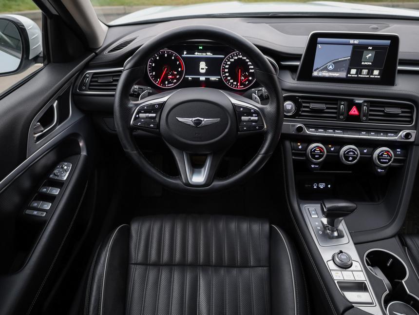 Представляем вашему вниманию Genesis G70 в комплектации Advance – автомобиль, который сочетает в себе премиальный комфорт, спортивную динамику и передовые технологии. Дизайн и стиль Genesis G70 выделяется своим элегантным и динамичным дизайном. Спортивные линии кузова, выразительная оптика и премиальные материалы отделки создают впечатление роскоши и изысканности. Технические характеристики Под капотом установлен мощный 2.0-литровый двигатель, развивающий 190 лошадиных сил, который в сочетании с полным приводом обеспечивает отличную динамику и управляемость. Автоматическая коробка передач с возможностью ручного переключения передач делает управление автомобилем еще более комфортным и приятным. Комфорт и технологии Genesis G70 в комплектации Advance оснащен всеми необходимыми системами комфорта и безопасности.