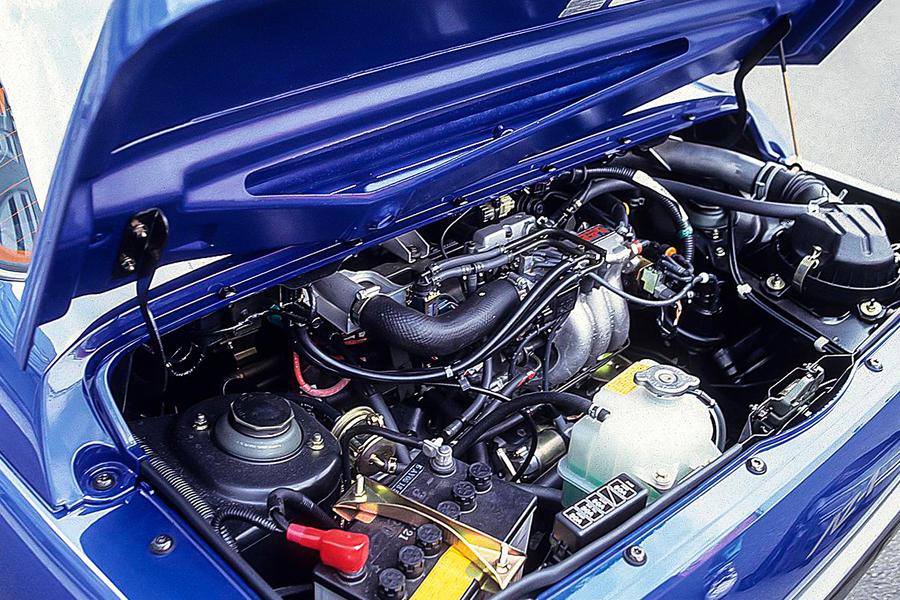 Как и положено кей-карам, размеры машинки воображение не поражали: длина 3295 мм. ширина 1395 мм, колесная база — 2235 мм. Среднемоторный заднеприводный Autozam AZ-1 оснащался трехцилиндровым, 0,66-литровым бензиновым мотором мощностью 64 л.с. (85 Н∙м), с которым на пару трудилась пятиступенчатая механическая КПП. Весила машинка 726 кг и могла разогнаться до 140 км/ч, затрачивая на преодоление первой сотни 11,5 секунды. Показатели не особо впечатляющие даже для начала девяностых годов, но не стоит требовать ураганной динамики Ferrari LaFerrari от кей-кара стоимостью 1 млн. 498 тыс. йен или 12 400 долларов.