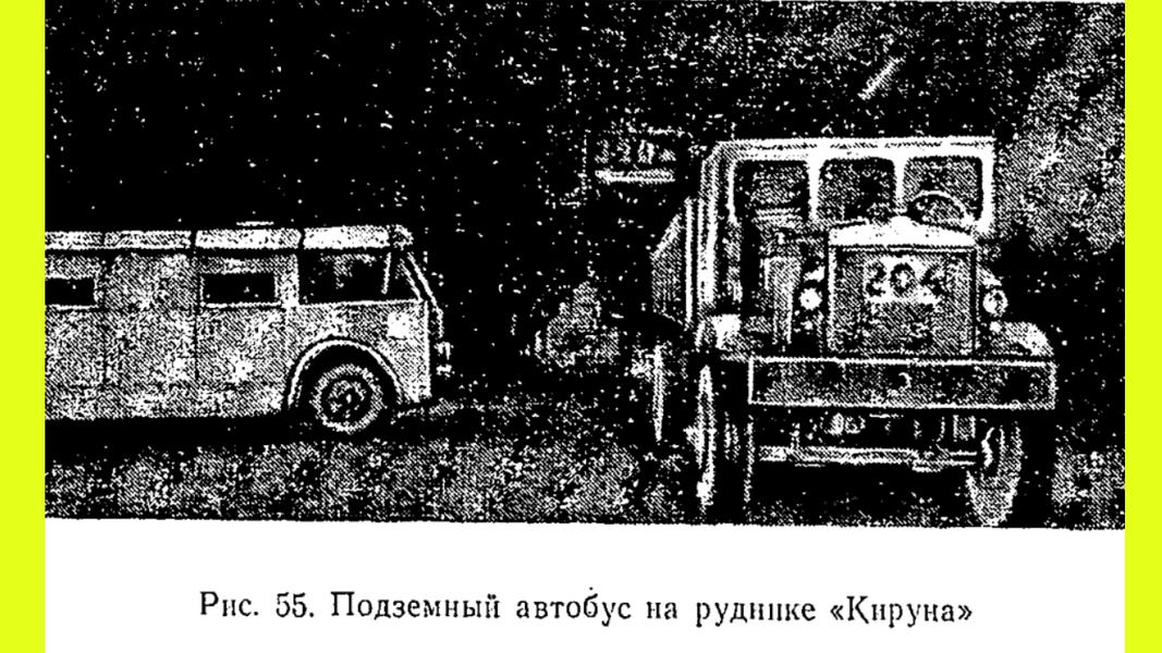 Какой транспорт и для каких целей использовался на подземных предприятиях«Описаны общая конструкция автомашин и их отдельных узлов; обслуживание, ремонт и эксплуатация автомобилей; очистка выхлопных газов, содержание, устройство подземных гаражей, подземных пунктов заправки и оборудование других выработок, связанных с автотранспортом», — говорится в книге.