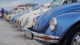 Выставка VW Beetle на фоне моря