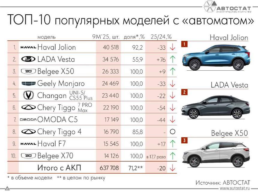 Кроссовер Haval Jolion вернул себе первое место среди машин с АКПП