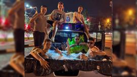 Москвичей повеселил попавший на видео пикап с бассейном в центре города