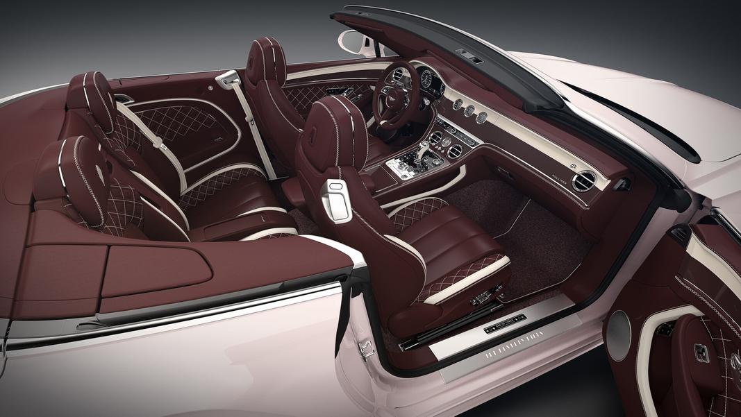 Третий Continental выполнен в зефирно-розовом цвете Hollywood Blush. Розовая кожа в салоне контрастирует с тёмно-красной обивкой Cricketball, и те же цвета использованы для приборной панели.
