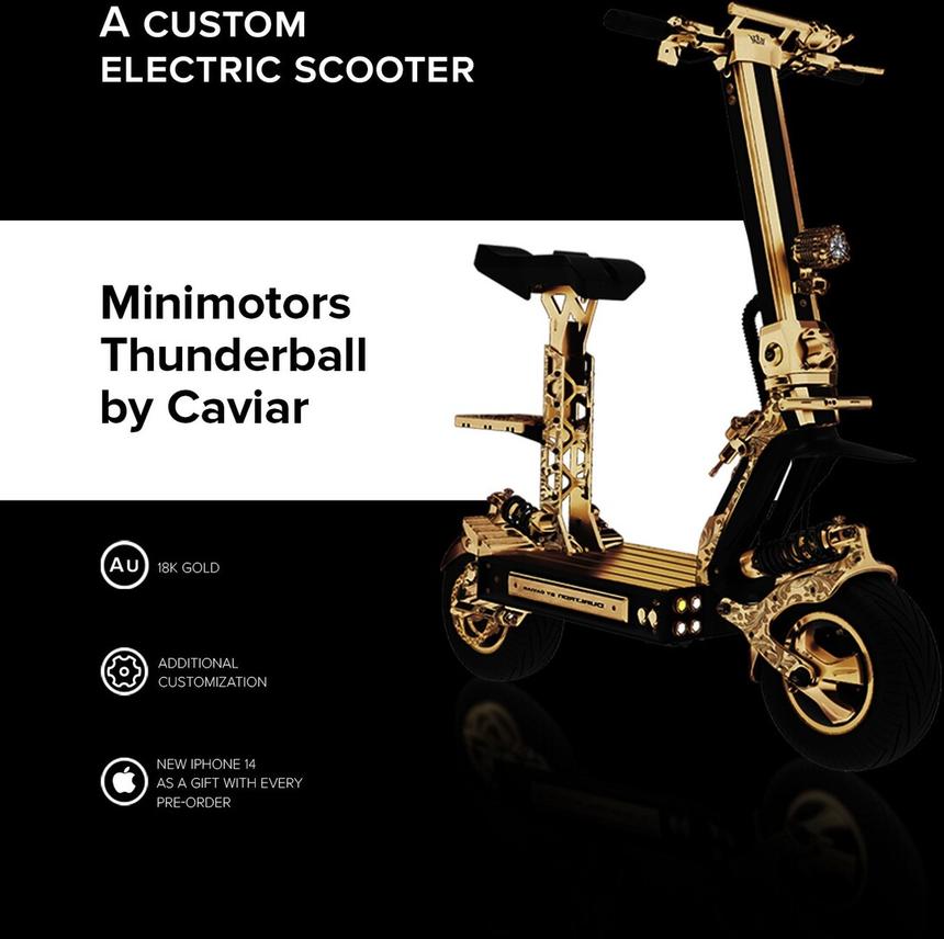 Этот золотой электроскутер Caviar Thunderball стоит дороже автомобиля