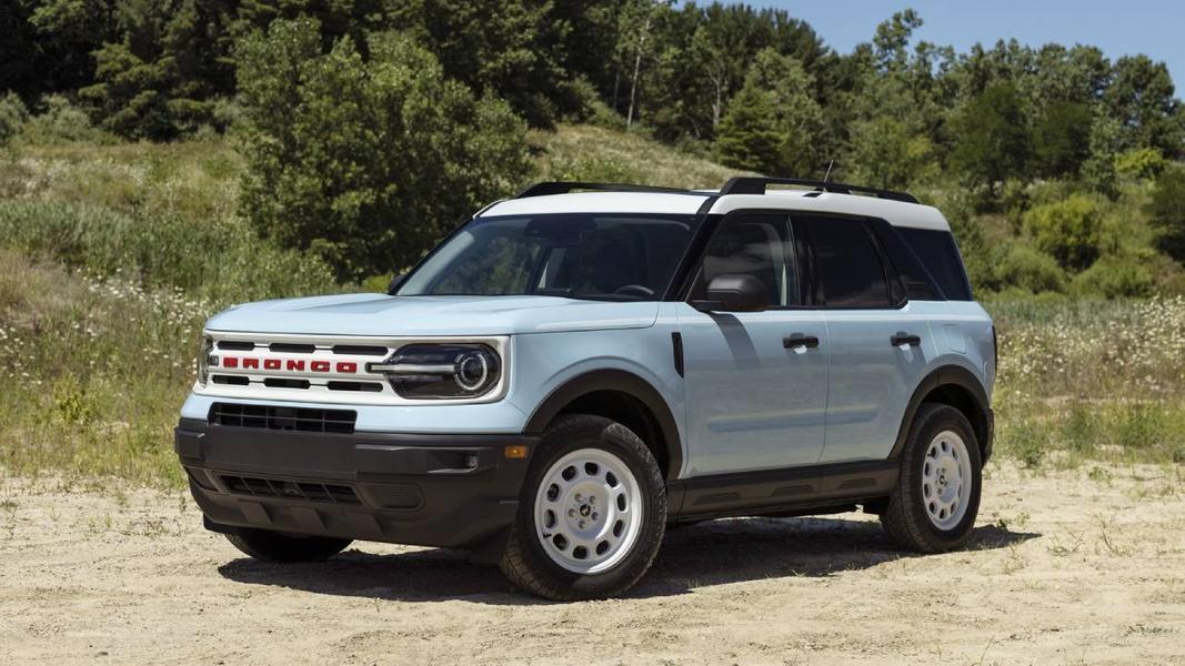 Версию Bronco Sport Heritage Edition обещают сделать самой хардкорной в семействе. Она будет оснащаться 29-дюймовыми колёсами, металлические шильдики на дверях и центральной консоли, кожаную отделку салона с контрастной прострочкой и возможностью заказать интерьер синего цвета, а также эксклюзивную отделку центральной консоли микрофиброй.