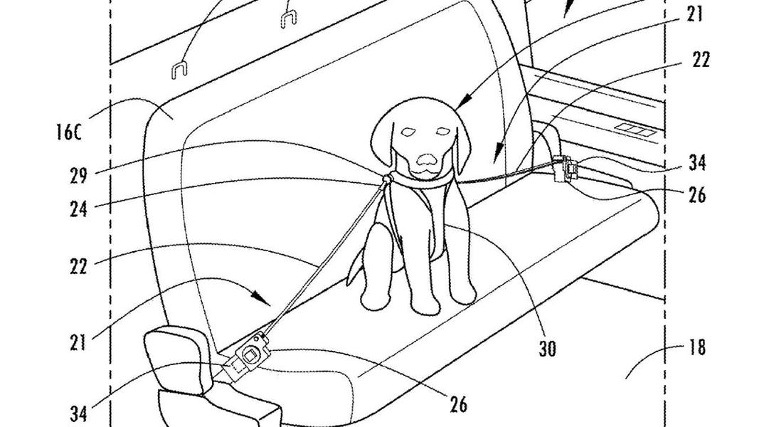 Любопытная концепция вызывает вопросыВ патентной заявке Ford предлагает концепцию системы безопасности, сочетающей в себе ремни безопасности и поводок. Один или несколько ремней крепятся к ошейнику собаки и к креплениям ISOFIX автомобиля. Сами ремни имеют вытяжную конструкцию – они снабжены датчиками, реагирующими на ускорение, и способными понять, что произошло столкновение.