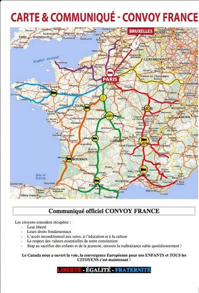 Колонны «Конвоя свободы» выдвигаются из Ниццы, Перпиньяна и БайонныПо данным французской газеты Le Figaro, организованные колонны машин выехали утром в среду, 9 февраля, по направлению в Париж из Ниццы, Перпиньяна и Байонны. Завтра к ним присоединятся протестующие автомобилисты из Бреста и Кемпера, а 11 числа – из Страсбурга, Лилля, Шербура и Шарлевиль-Мезьер. В пятницу колонны прибудут в столицу Франции Париж.