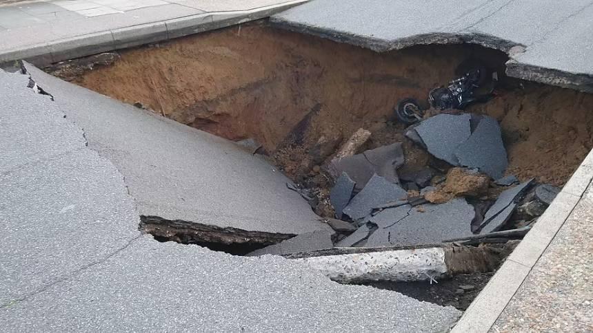 Гигантская воронка разверзлась в Лондоне и поглотила мотоцикл