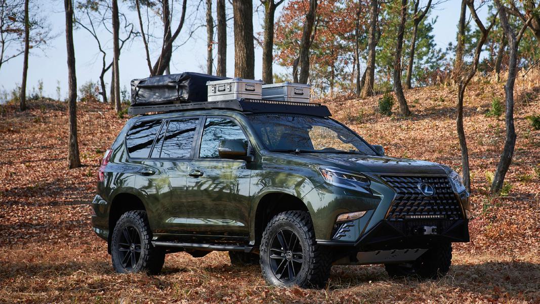 В основу концептуального GX Outdoor легла версия GX 460. Автомобиль окрашен в цвет хаки и предназначен для более сурового бездорожья. На переднем бампере и крыше установлены дополнительные светодиодные балки, также модель оборудована электрической лебёдкой Wam, доработанной подвеской и установленной на крыше палаткой Yakima. В багажник встроена небольшая кухня.
