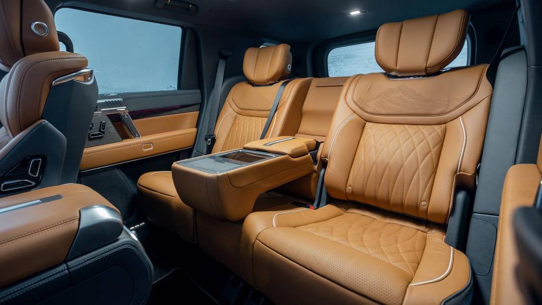 Пассажиры заднего ряда могут регулировать настройки переднего пассажирского сиденья, а также обзавелись отдельным блоком управления климат-контроля с монитором в центральном подлокотнике. В отделке салона используются кожа Nappa и шпон редких пород дерева.