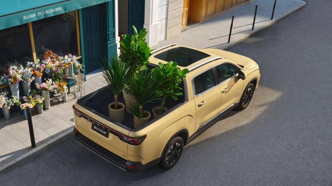 Модели размером с Toyota Hilux полного привода не досталось.Машина построена на платформе SEA. Габариты модели составляют 5260 мм в длину, 1900 мм в ширину и 1830 мм в высоту, размер колёсной базы равен 3120 мм. В багажном отделении установлено шесть розеток, способных питать электрооборудование суммарной мощностью 2000 Вт, а максимальная масса груза, который можно перевозить на автомобиле, составляет 795 кг.