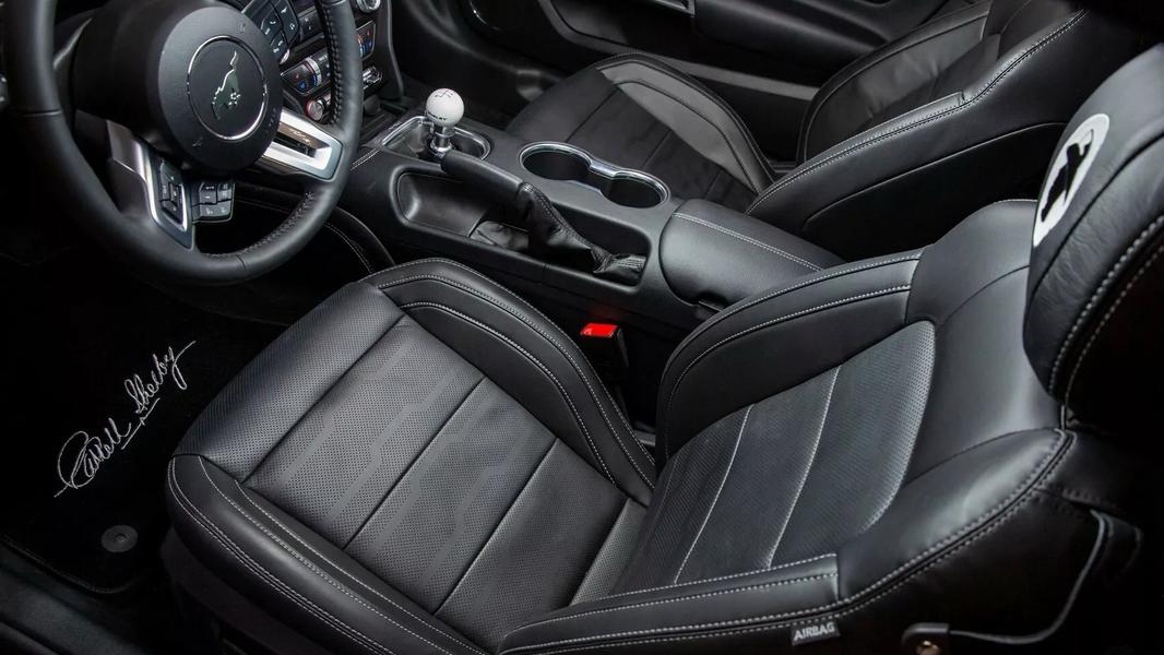 От других проектов Shelby American юбилейный кит отличается шильдиками, прострочкой и тиснениями, напоминающими о Кэрролле Шелби. Поменялся значок на крышке багажника, появились накладки на задних стойках, особые коврики, вышивки на подголовниках и автографы на передних воздухозаборниках. В течение года будет сделано 100 особых двухдверок.