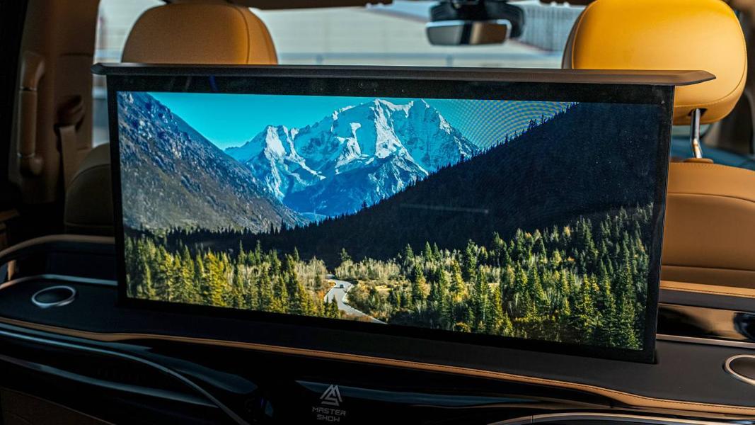На всю ширину передней панели вытянулся 1400-мм монитор, который объединяет в себе три 12,3-дюймовых экрана: виртуальную панель приборов, экран медиасистемы и дополнительный дисплей перед передним пассажиром.