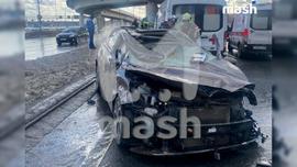 В Москве бетонная плита упала с эстакады на дорогу: она приземлилась прямо на машины