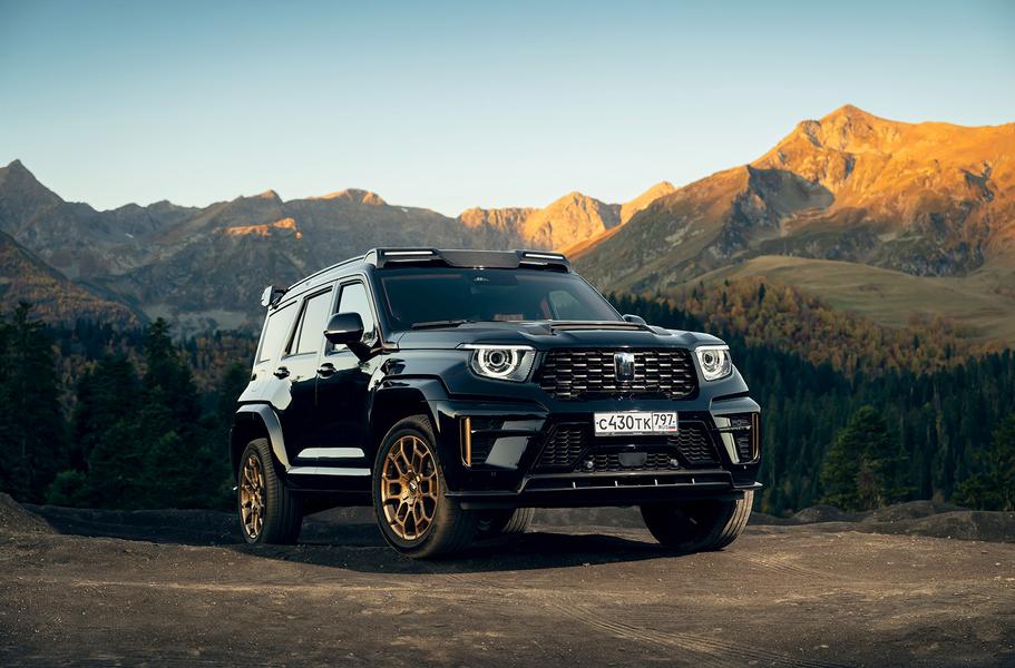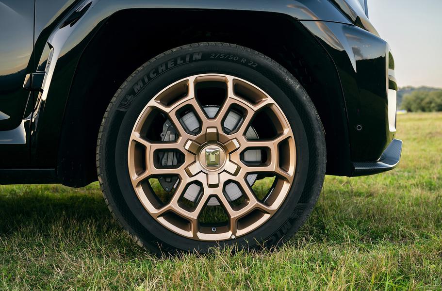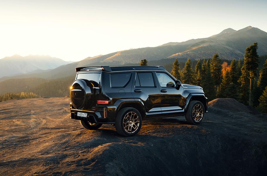 Самый тяжелый во всех смыслах люкс — это флагманская модификация Edition One, сходу оставляющая без работы десяток тюнинговых контор. Гипертрофированный обвес, пафосные 22-дюймовые «тапки» на спортивной резине Michelin Pilot Sport 4 SUV, «позолота» здесь, тут и вон там — и даже элементы из настоящего карбона на капоте, крыше и бамперах.