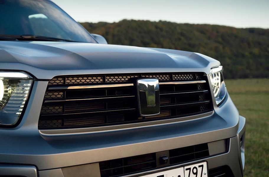 Смотреть, кстати, придется долго — потому что автомобиль реально огромный. Габариты скрадываются ломаными формами, но на самом деле он намного больше «пятисотки» — 5,1 метра в длину, 2,1 в ширину и с трехметровой колесной базой. Масса? От 2,9 до 3,2 тонн — не полная, а снаряженная!