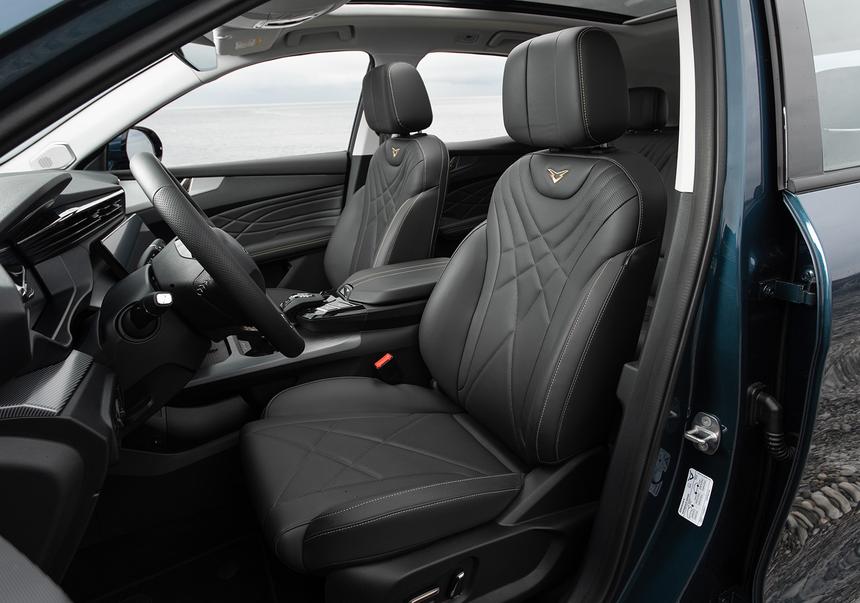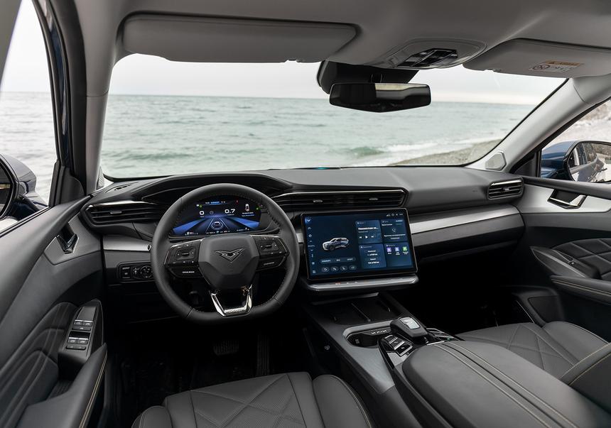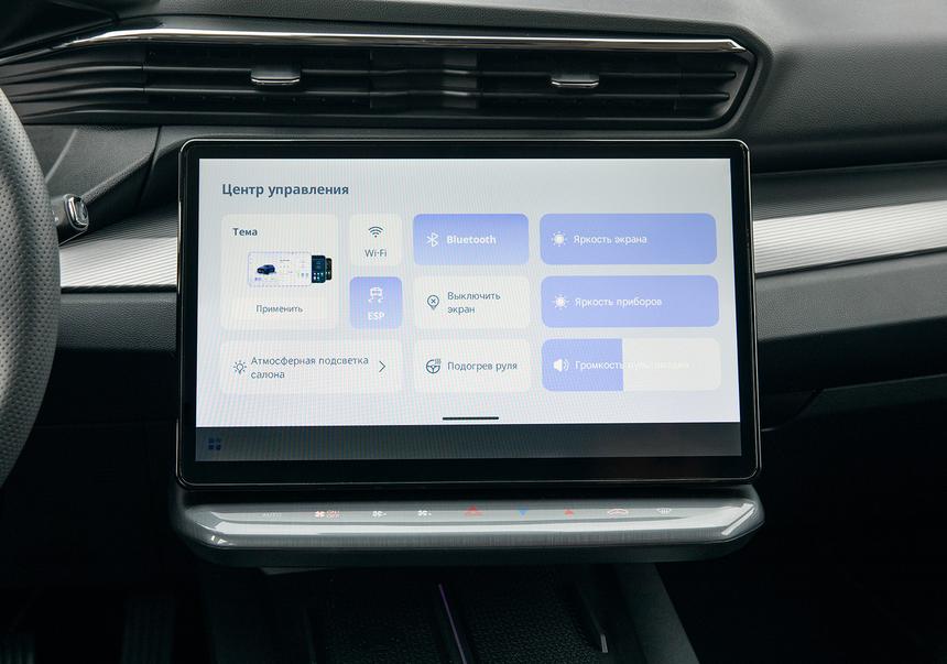 Обошлось здесь и без традиционных азиатских промахов: подушки передних сидений длинные, а сами кресла с боковой поддержкой удобные не только на коротких, но и на длинных дистанциях. Цифровая панель приборов выглядит «вдавленной» в переднюю панель и почти не бликует на солнце, а 14,6-дюймовый тачскрин слегка развёрнут в сторону водителя.