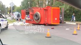 Опрокидывание мусоровоза в Подмосковье попало на видео