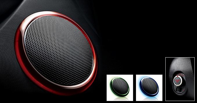 Подсветка динамиков реагирует на музыку, пульсируя в такт ритму, а яркость подсветки соответствует установленной громкости. Вы можете выбрать цвет подсветки простым поворотом переключателя: с красного
