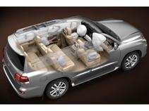 В январе 2012 года состоялась мировая премьера рестайлингового внедорожника Lexus LX III поколения. В отличие от модели предыдущей генерации новинка получила видоизменённую головную оптику со светодиодными полосками и другую решётку фальшрадиатора. Передний бампер машины также подвергся корректировке, в чём можно убедиться, взглянув на фото в галерее. На территории нашей страны доступны четыре комплектации внедорожника и два варианта исполнения салона (пятиместный и восьмиместный) при наличии одной силовой установки. Превосходные технические характеристики полноприводного автомобиля обеспечиваются 5.7-литровым восьмицилиндровым бензиновым мотором V8 мощностью 367 лошадиных сил. Он работает в паре с шестиступенчатым «автоматом». За 7.5 с «Лексус Эл Икс» набирает скорость в 100 км/час. Топливный расход составляет 14.8 литров на каждые 100 км пути – значительно больше, чем у Audi Q7. Наименее экономичная дизельная версия немецкого конкурента с 500-сильным агрегатом расходует и то меньше топлива, не говоря уж об остальных модификациях. Правда цена у «немца» поднимается до пяти миллионов. Что касается японской новинки, то её базовую комплектацию «Премиум» можно купить за 4 284 000 рублей. Причём она достаточно неплохо оснащена. Если же покупатель сочтёт имеющееся в «базе» Lexus LX 570 оборудование недостаточным, то он сможет присмотреться к другим вариантам. К примеру, в модификации Luxury за 4 389 000 рублей дополнительно предлагаются семидюймовые экраны в подголовниках передних сидений. Топовая комплектация Lexus LX Luxury Sport обута в двадцатидюймовые колёсные диски и шины размерностью 285/50. Её покупка обойдётся клиенту в 4 443 000 рублей. Прайс-лист на Mercedes-Benz GL-класса начинается с отметки в 3 270 000 рублей за комплектацию с дизельным двигателем, развивающим 224 л. с. На Infinity QX официальными дилерами назначена стоимость в 3 795 000 рублей. Под его капотом трудится бензиновый 5.6-литровый мотор мощностью 405 лошадиных сил. Движок у «Лексус Эл Икс» слабее.