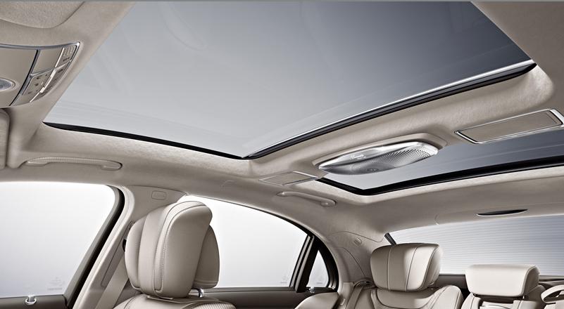 Возможность варьировать сдвиг панели крыши позволит индивидуально обеспечивать разные части салона свежим воздухом. Сетчатый ветроотклоняющий щиток будет при этом уменьшать неприятные воздушные завихрения и держать уровень шума на комфортно низком уровне. Двухсекционные шторки в цвет отделки салона можно будет при чрезмерной засветке салона солнечным светом опустить вдоль стекла крыши – посредством однокнопочного управления.