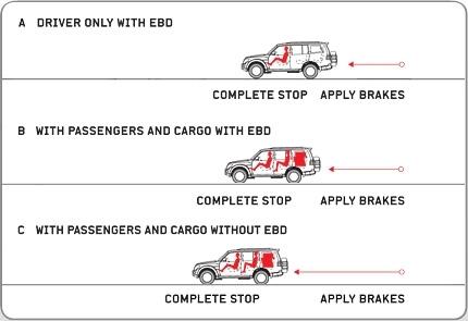 EBD регулирует тормозное усилие на каждое колесо независимо. При необходимости система до-