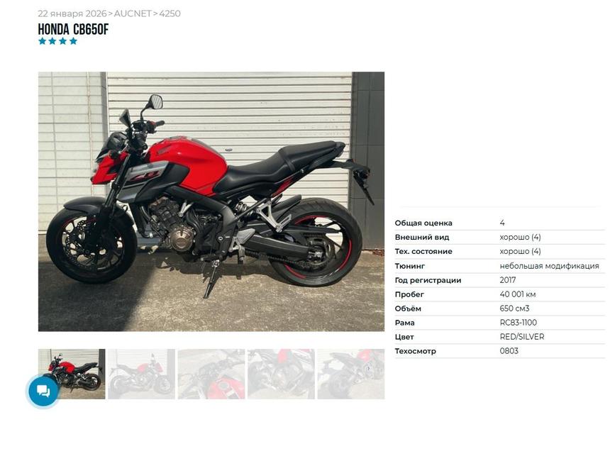 С пробегом Honda CB650F 2017