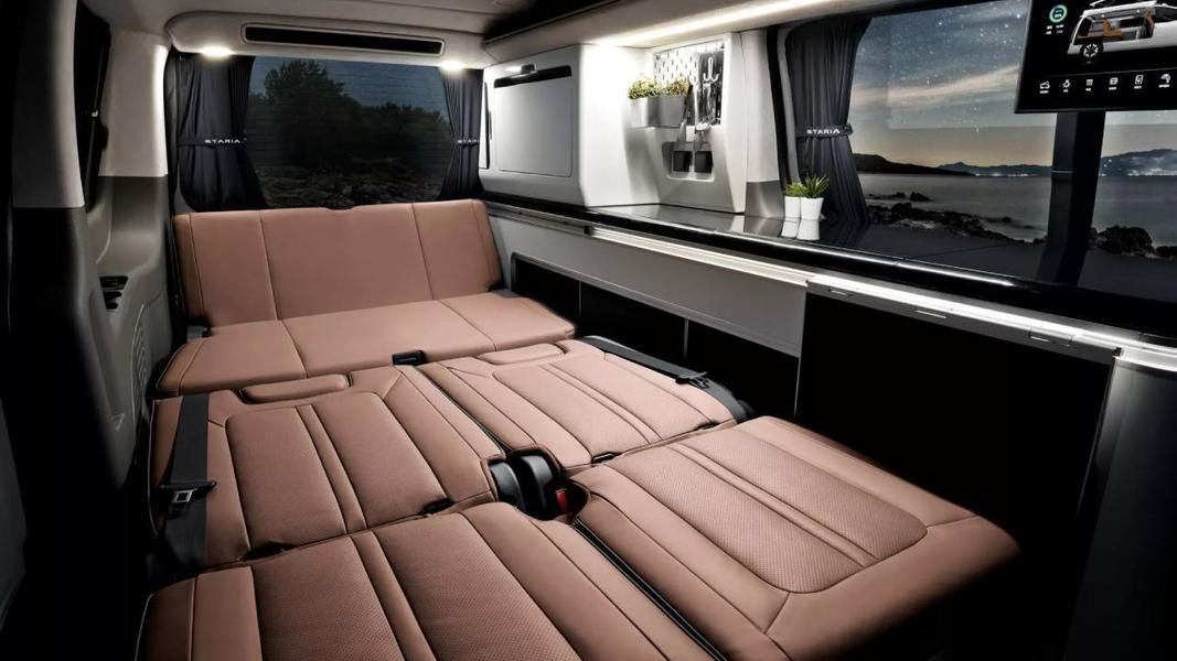 Staria Camper оснащается 218-сильным электромотором, установленным на передней оси, который питается от 84-киловаттного аккумулятора. Без подзарядки батарейный вэн способен проехать до 400 км.