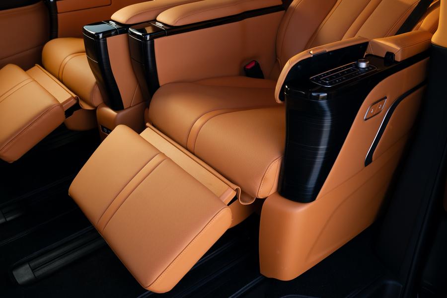 Настоящая роскошь в Wey 80 — разумеется, на втором ряду, где должен ездить босс. Здесь установлены раздельные кресла со всеми возможными «наворотами»: подогрев, вентиляция, массаж, выдвижная оттоманка и возможность разложить всё это хозяйство почти в полноценную раскладушку и отдохнуть в пути. Правда, в движении активация релакс-режима одной кнопкой недоступна ради безопасности, но ручное управление работает без ограничений. Все клавиши управления скрыты в широкий подлокотник.